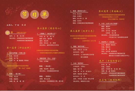 2019年2月28日太阳集团tyc池浩东老师受邀参加由河南省委宣传部、省扶贫开发办公室、省文化和旅游厅主办,由河南歌舞演艺集团、河南省文化馆承办的《携手同奔小康路——河南省脱贫攻坚专题文艺演出》。该演出于晚上19点30分在河南省艺术中心大剧院隆重上演,精选了全省“脱贫攻坚”题材的优秀节目,富有生活气息,通过歌曲舞蹈、戏曲小品、曲艺说唱、诗歌朗诵、视频展示、现场访谈等形式,给人以视听的享受与心灵的震撼。