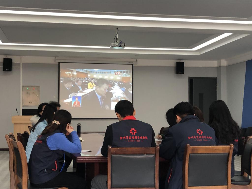 十三届全国人大二次会议于2019年3月5号在北京召开,公司党总支组织无课教师、员工党员、团学会干部及员工代表在艺术楼411会议室观看开幕式视频直播,并进行讨论学习。