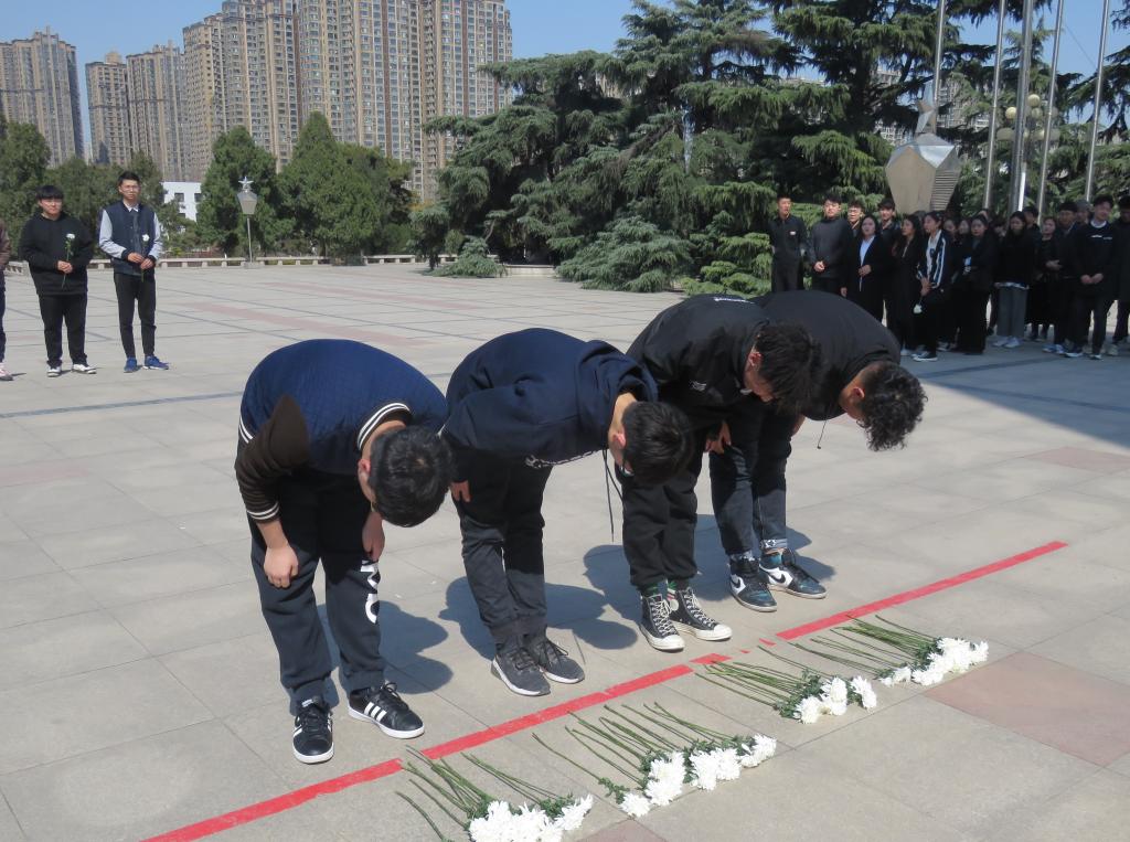 活动伊始,参与此次活动的全体师生站在中原英烈纪念碑前,怀着崇敬的心情默哀一分钟,沉痛悼念革命先烈,同时也表达了对革命先烈诚挚的敬意和深切的怀念。接着由王邦宇同学领读了吊唁稿,表达了对革命先烈的崇敬之情。随后全体成员轮流对烈士敬献花束并进行悼念。