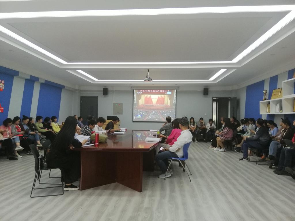 随后,与会全体人员观看了新闻联播关于纪念五四运动100周年大会习近平发表重要讲话的视频。