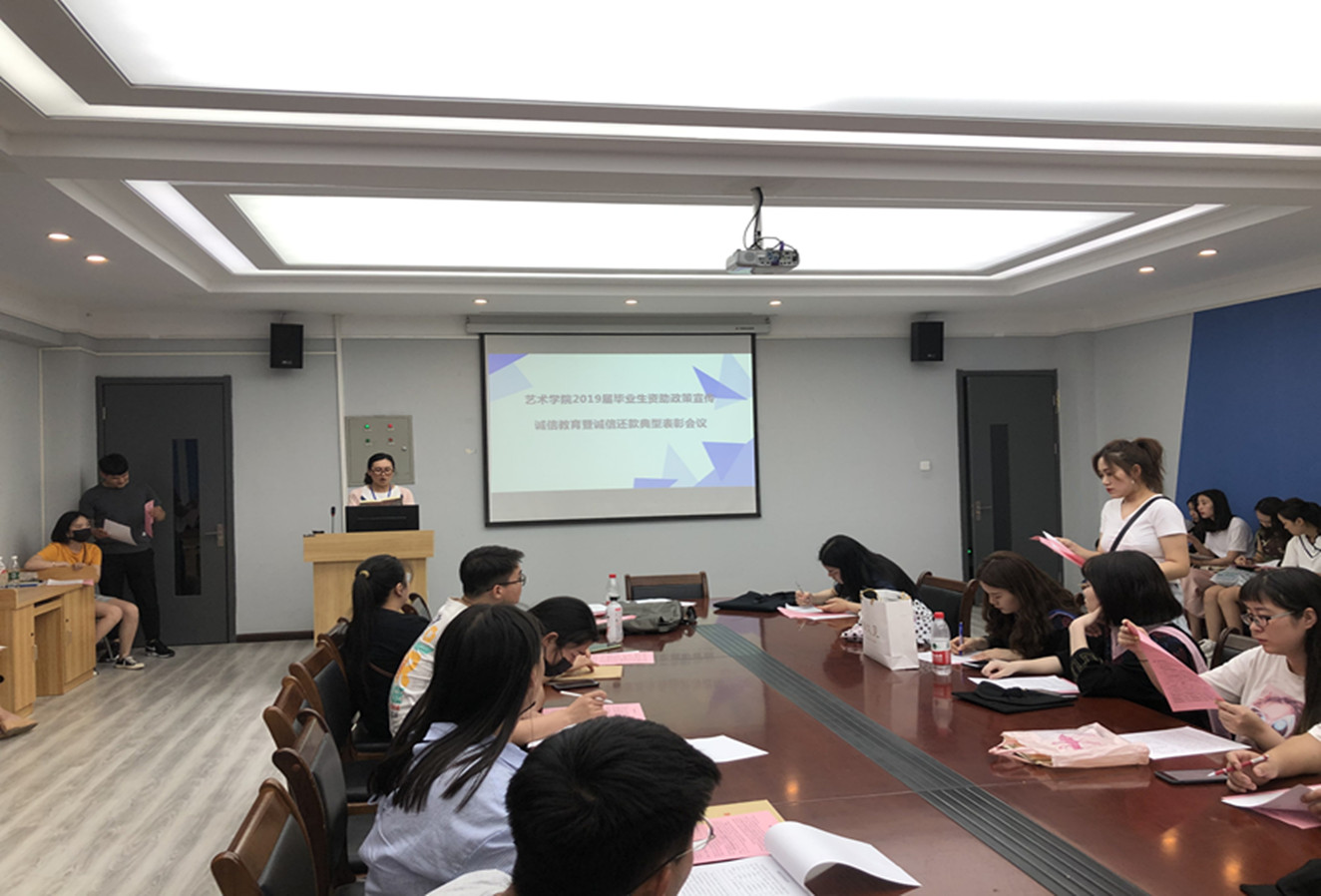 2019年6月4日下午6时,太阳集团tyc在艺术楼411举行2019届贷款资助政策宣传、诚信教育暨诚信还贷典型表彰会议。参加此次会议的人员有太阳集团tyc资助专员郭称心老师及2019届贷款毕业生,此次会议由郭称心老师主持。