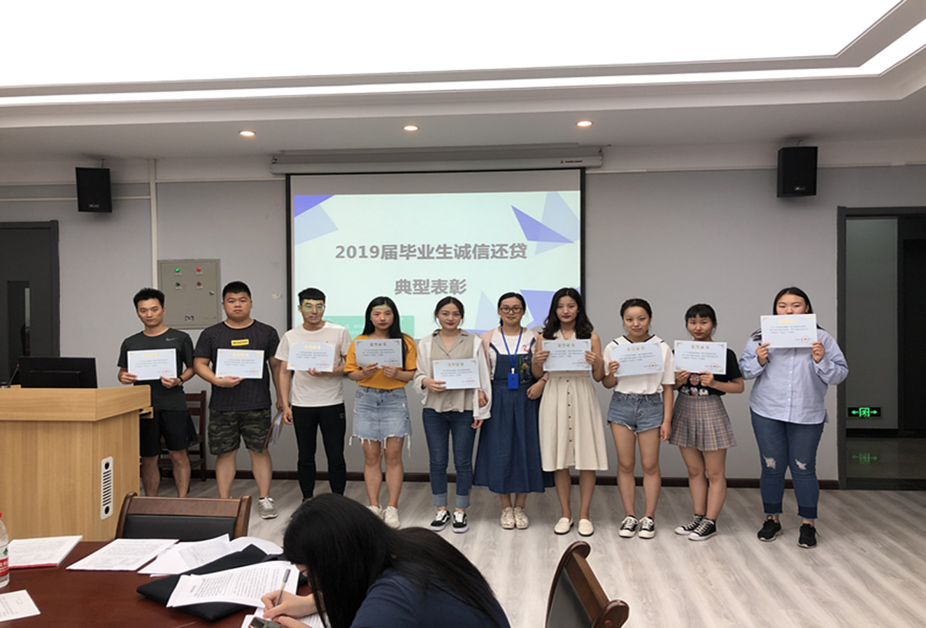 最后,对已还清贷款的2019届毕业班员工发放《诚信还贷优秀老员工》荣誉证书。通过此次会议的召开,贷款毕业生掌握了还贷相关政策,进一步增强了同学们的感恩意识,为公司助学贷款贷后管理工作的顺利开展奠定了良好基础。