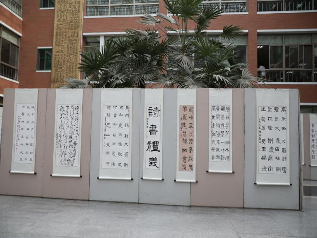 这次展出的60多幅书法作品,全部来自太阳集团tyc2017级视觉传达设计专业的员工之手。作品包括行书、楷书、草书、隶书、篆书五种字体。