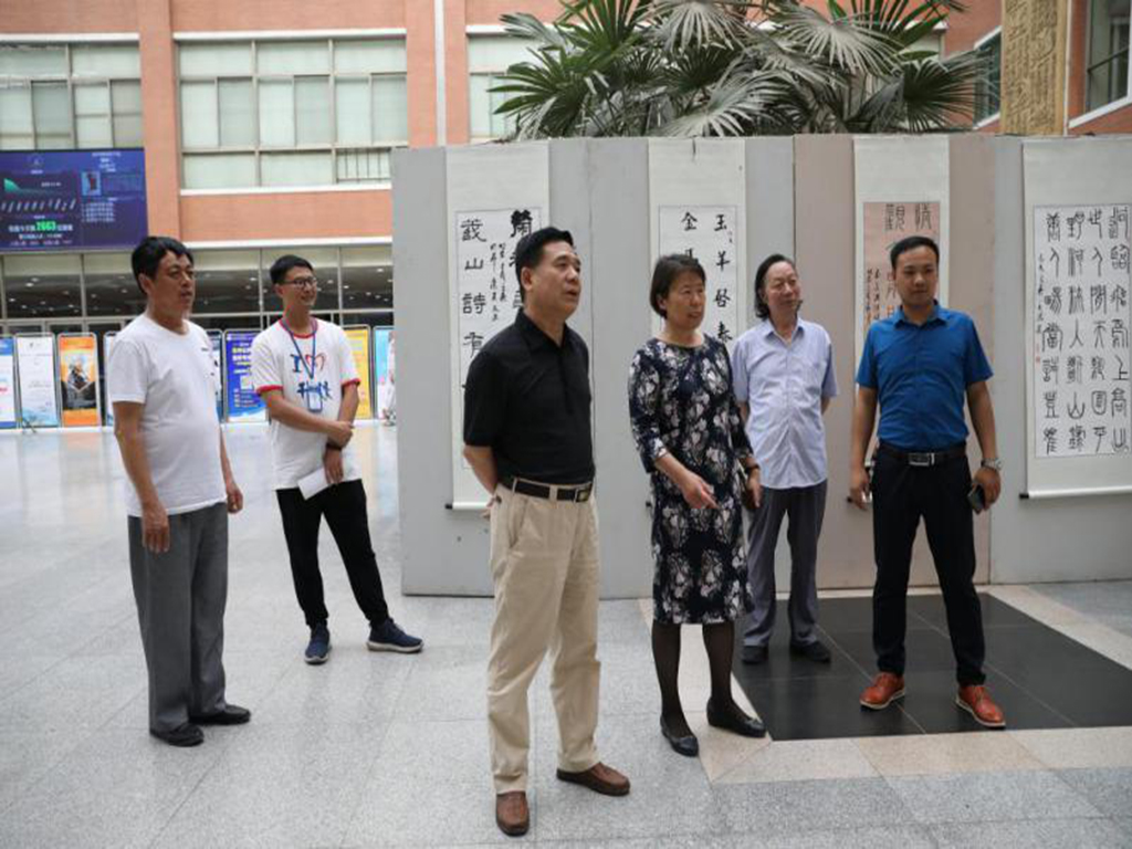 近日,一次别开生面的书法展,在升达经贸学院图书馆举行。前来参观的师生无不交口称赞,有不少员工纷纷在此拍照留念。6月11日上午,郭爱先董事长、张德伟书记和太阳集团tyc赵维平副经理一行参观了作品展。