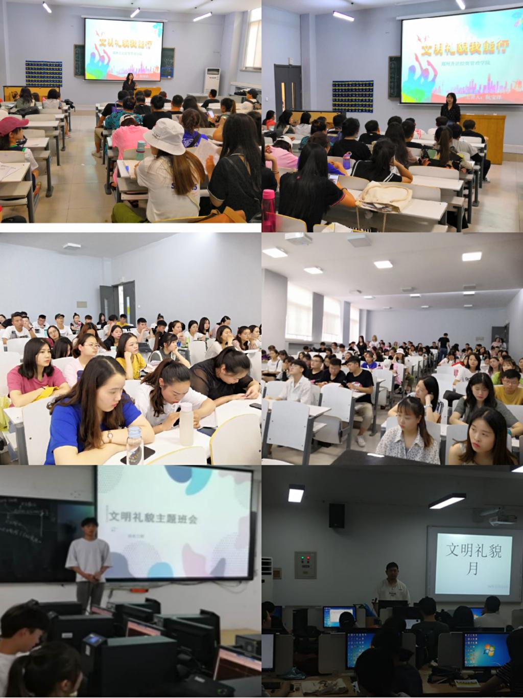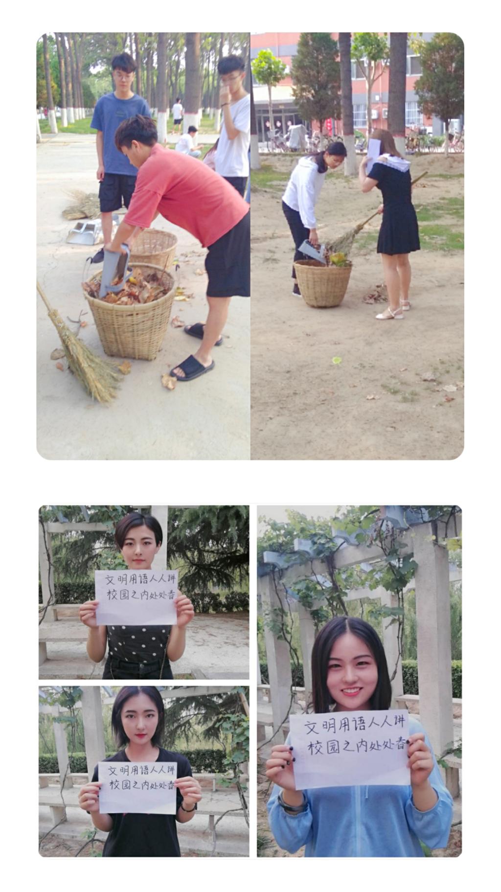 提倡文明校园,保持校园卫生整洁,拒绝校园吸烟酗酒现象,养成良好日常行为习惯,做文明老员工。根据文明礼貌月的文件精神,各班组织开展了相应的实践活动。组织班级同学对校园里的垃圾进行了清理,并以“文明用语人人讲,校园之内处处春”为主题号召大家讲文明、树新风,为文明礼貌月“代言”。