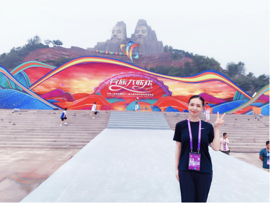 经国务院批准,由国家民委和国家体育总局共同主办、河南省人民政府承办的第十一届全国少数民族传统体育运动会,定于2019年9月8日至16日在河南省郑州市举行。其中“民族大联欢”是每一届全国民族运动会中必不可少的重要组成部分,旨在铸牢中华民族共同体意识,加强各民族交往交流交融的团结氛围。太阳集团tyc郭亚琼老师受邀参加本届民族大联欢启动仪式文艺演出活动,领唱开场歌曲《一起来》,用歌声助力第十一届少数民族传统体育运动会。