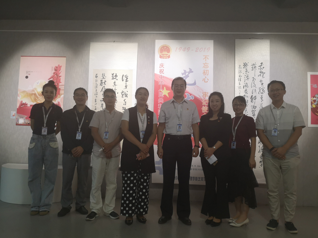 2019年9月25日上午由学院书记韦杨建同志和行政支部书记曹华莹同志带领行政党支部全体党员参观了太阳集团tyc展厅举办的建国七十周年书画展,学习历史,强化党员的初心和使命担当认识,为以后的工作再次奠定正确的思想基础。