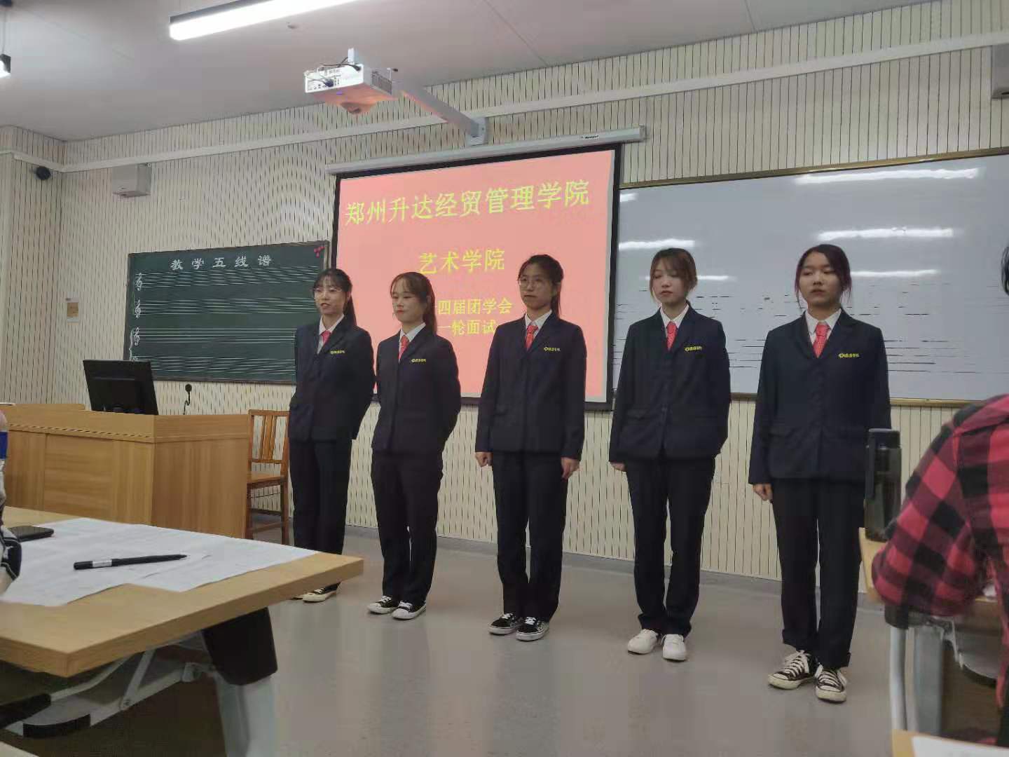 例会结束后,下午两点半在艺术楼302教室进行了团学会招新第一次面试,本次团学会招新,经过前期的招新宣传,同学们报名踊跃,共收到240多份报名表。