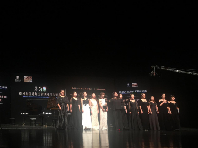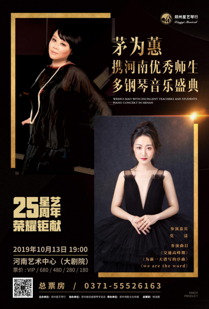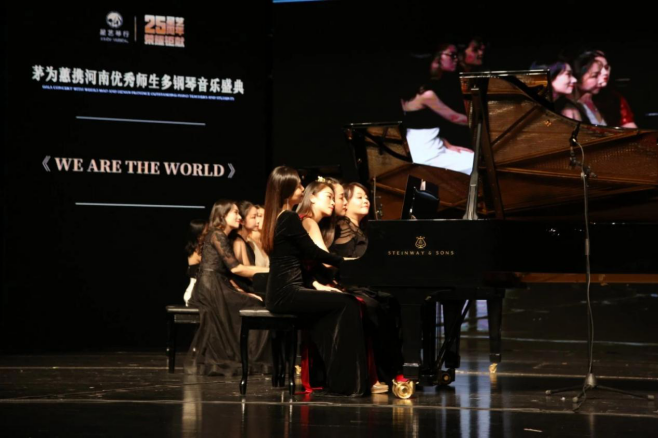 2019年10月13日晚,经历五个多月精心筹备,这场由郑州星艺琴行主办的茅为蕙携河南省内多位优秀师生共同带来的别开生面的多钢琴音乐盛典于河南省艺术中心大剧院圆满落下帷幕。公司党漾老师受邀参演,并演奏了《交通高峰期》《为新一天谱写的序曲》《we are the world》。