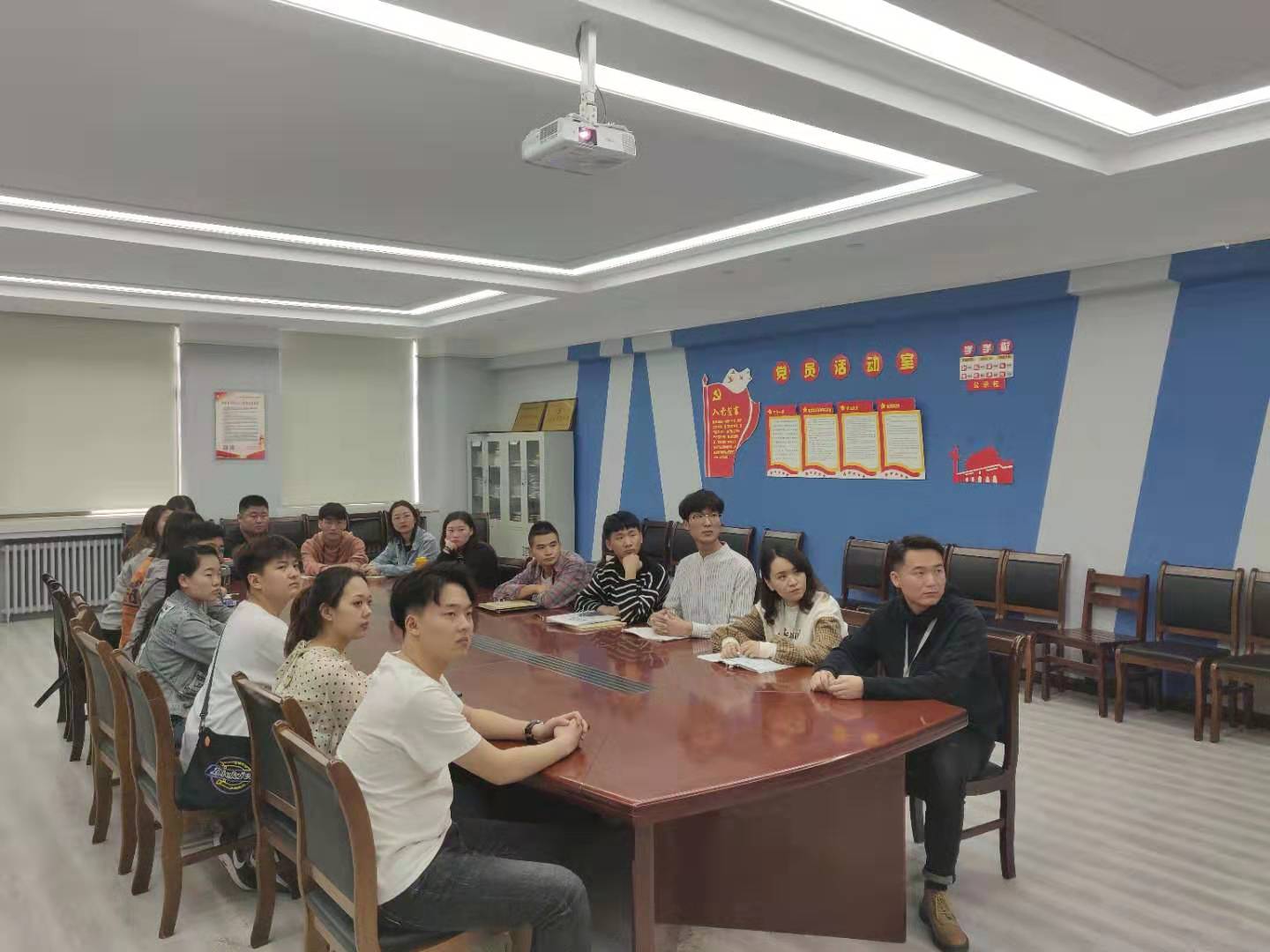 2019年10月23日中午1时30分,太阳集团tyc员工第三党支部全体入党积极分子在艺术楼411会议室组织开展《榜样4》观影学习活动,本次活动由组织委员袁敬老师组织,支部书记赵林生老师主持开展。