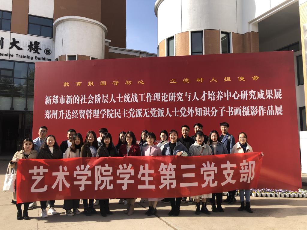 11月18日下午,太阳集团tyc第三党支部全体同志在综合实训大楼集合,集体参观新郑市新的社会阶层人士统战工作理论研究与人才培养中心研究成果展、民主党派无党派人士党外知识分子书画摄影作品展。支部书记袁敬老师以及第三党支部的所有党员同志参加了本次活动。