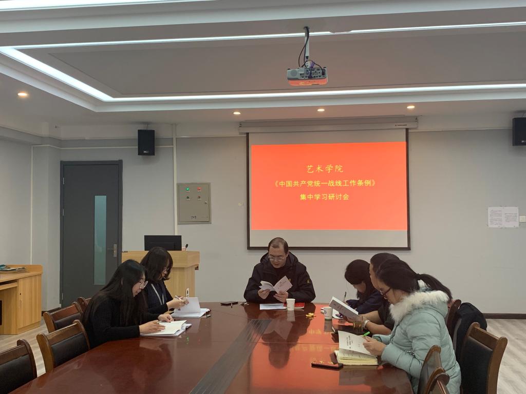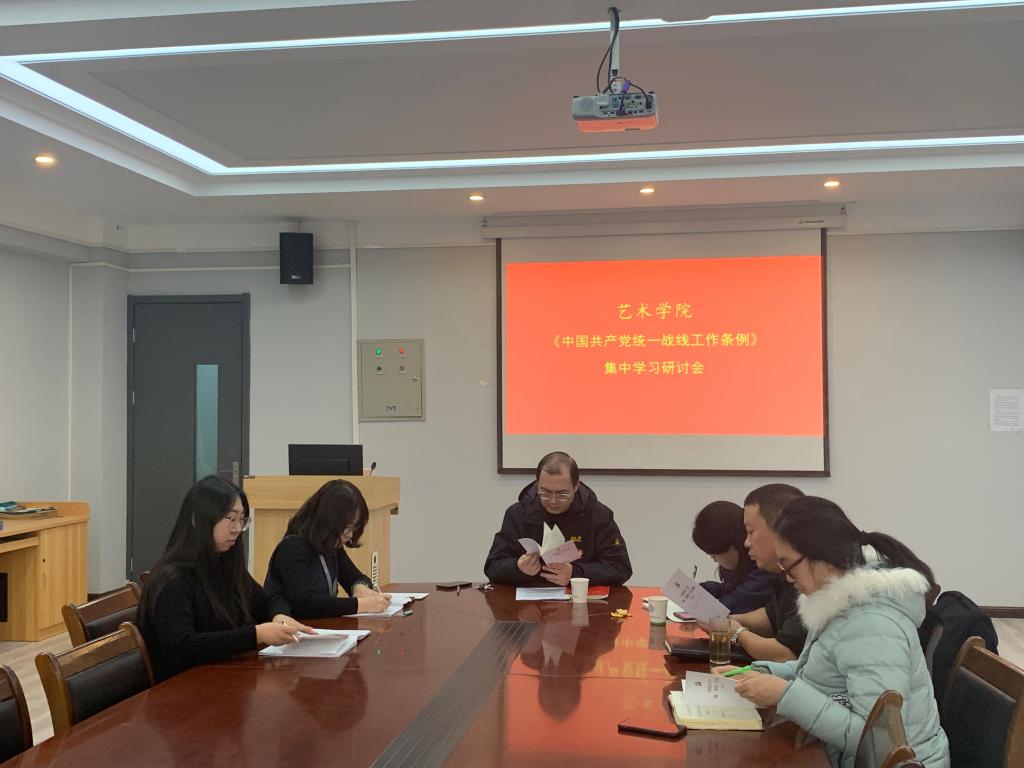 11月29日上午,太阳集团tyc各党支部书记在艺术楼411集中学习研讨会,在总支书记韦杨建的带领下共同学习了《中国共产党统一战线工作条例(试行)》。