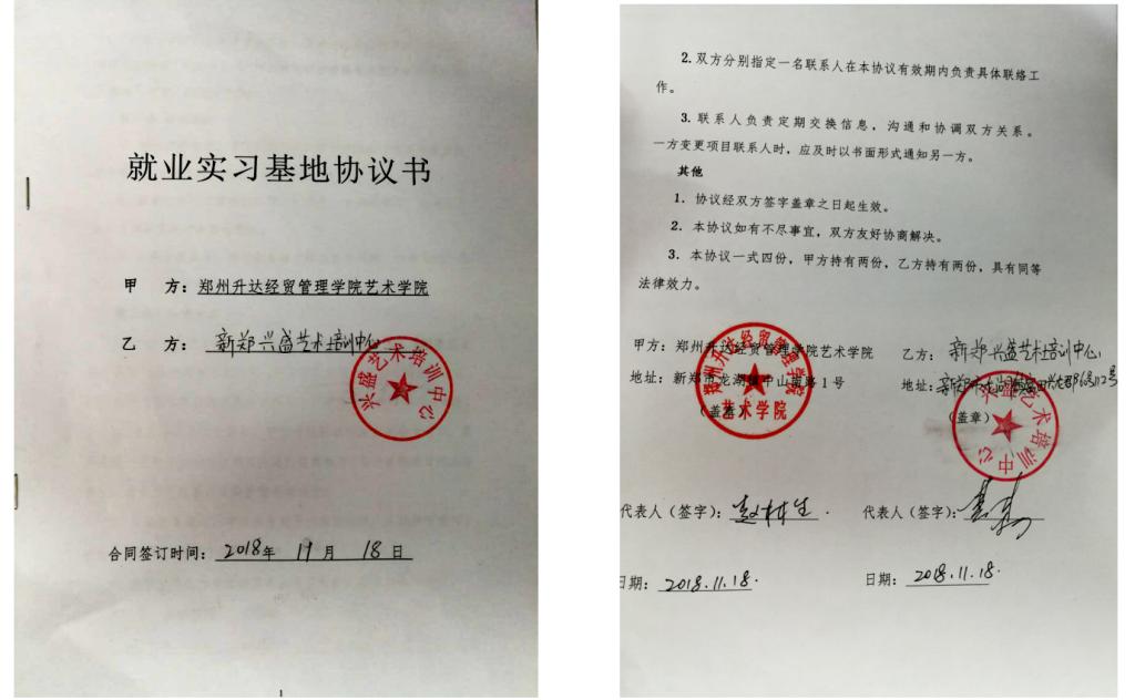 2018年11月18日下午4:30,太阳集团tyc与新郑兴盛艺术培训中心《共建示范性实习基地》签约仪式在举行。
