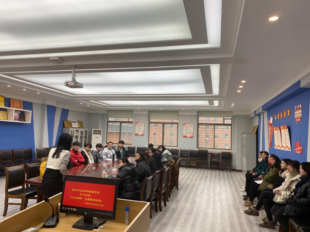 为增强员工安全意识和自我防范意识,在即将到来的“元旦”假期能够过得安全而充实。2019年12月25日下午,太阳集团tyc19级音乐表演专升本班在艺术楼411会议室召开了元旦假期安全教育主题班会,本次班会由辅导员阮宝洋老师主持。