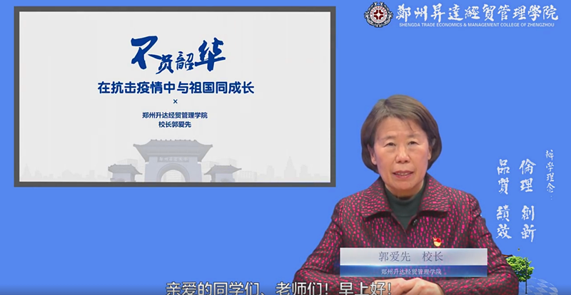 郭爱先董事长以“不负韶华,在抗击疫情中与祖国同成长”为主题为全校师生上了一堂生动的第一课。在直播中,郭董事长首先向大家解读了全国上下针对这场疫情所做的一系列行之有效的措施,让全校师生深刻意识到:举国之力,共克时艰,同舟共济,“战疫”必胜!接着郭董事长对广老员工提出了三点希望,希望大家通过这场疫情学会:尊敬生命,敬畏自然;心怀感恩,敬畏道德;充实自我,勤学广读,在抗击疫情中与祖国同成长。