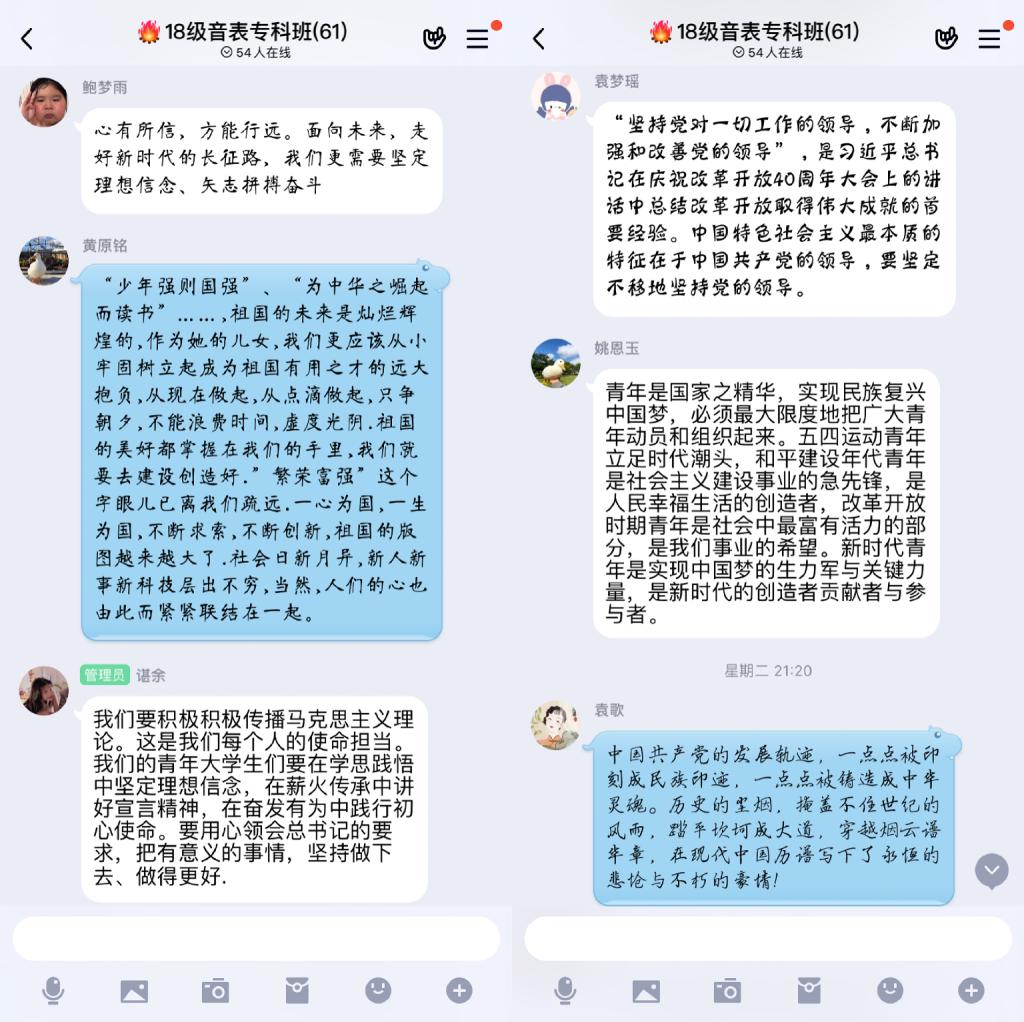 学习过后,同学们在各班群进行热烈的讨论。