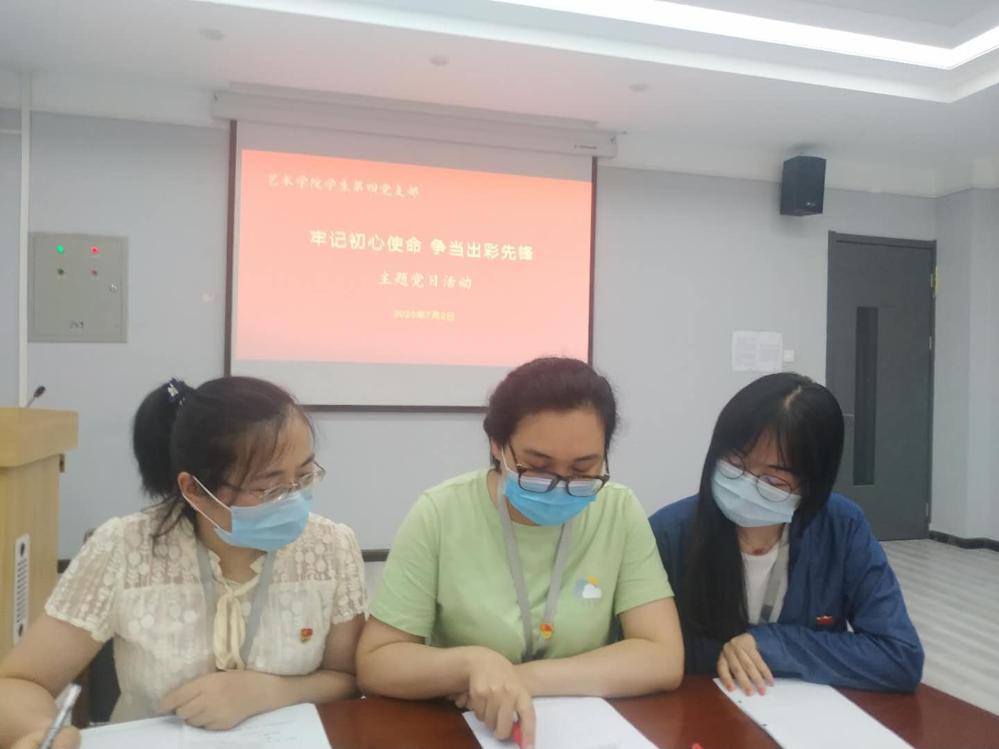 接着,支部书记郭称心向全体党员传达了员工第四党支部“七一”主题党日活动方案,并做了党日活动动员讲话。郭书记特别强调作为艺术设计专业的员工,要发挥自身专业特长,结合建党99周年祖国的繁荣发展和“牢记初心使命、争当出彩先锋”活动来进行海报设计来庆祝党的生日。