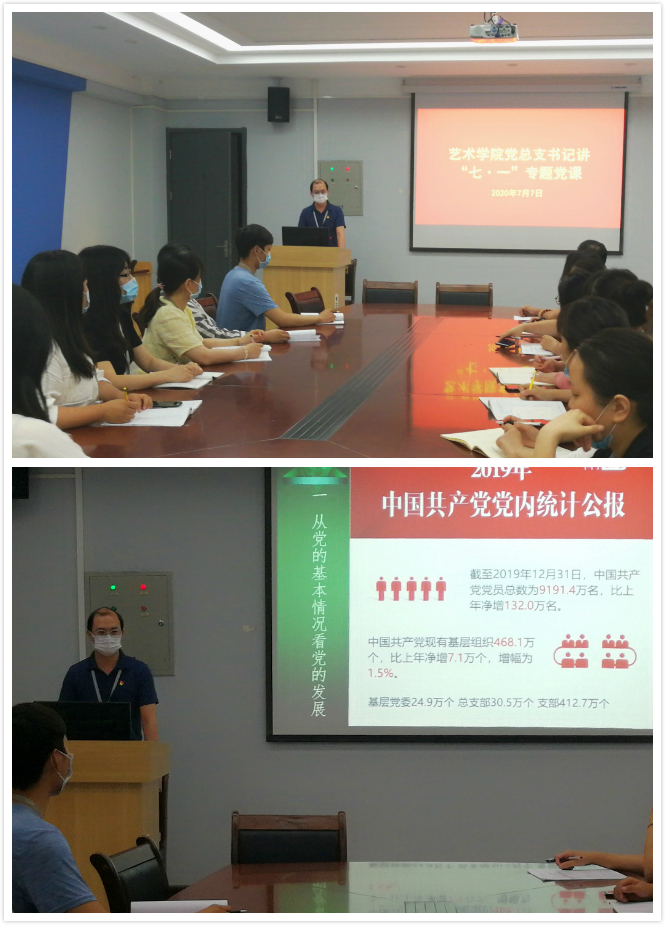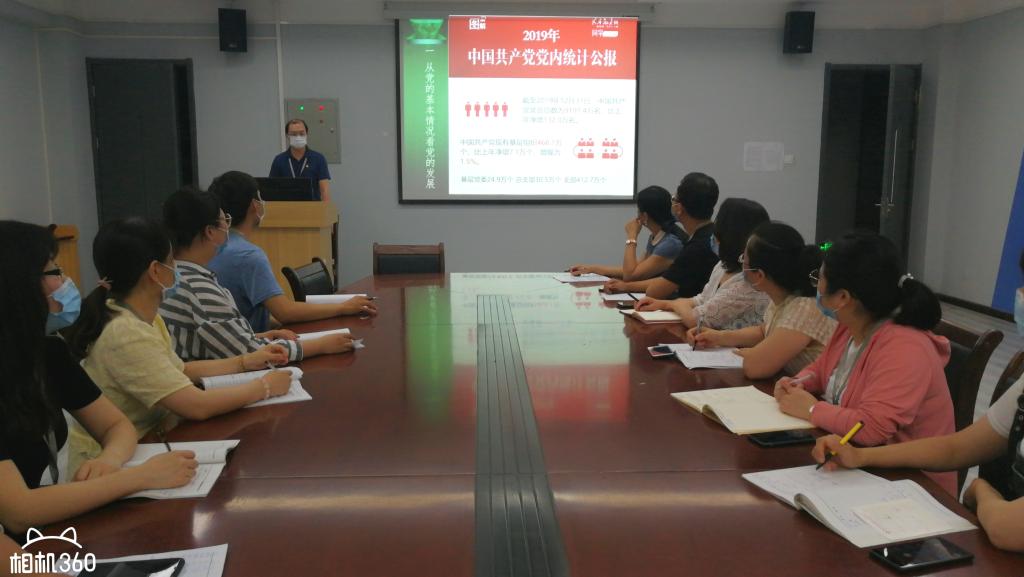 在公司党员同志于艺术楼411会议参加党课,其余党员同志通过钉钉直播进行线上学习。