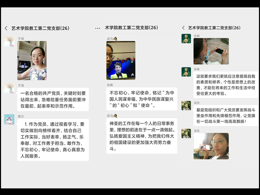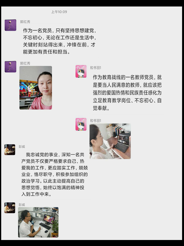 张雯同志说:“作为教师党员,要不忘初心、牢记使命,在各方面严格要求自己,积极投入教育工作,甘于奉献,不断进步与成长。”