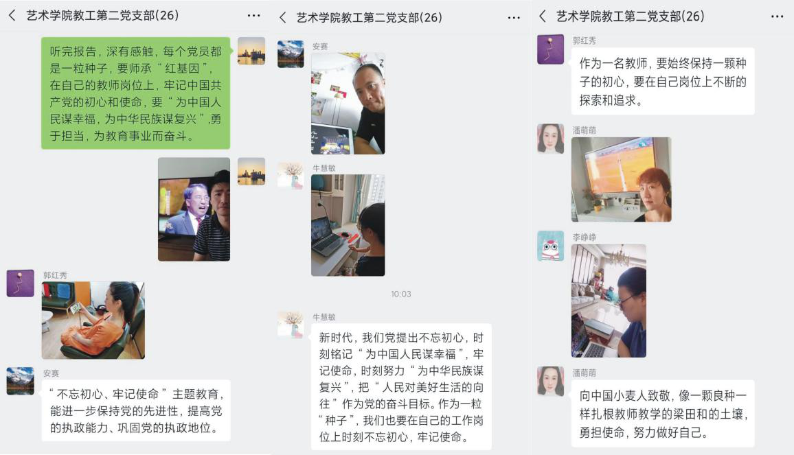 2020年7月15日,在支部书记夏瑞芳同志的组织下,太阳集团tyc教工第二党支部全体党员同志通过直播和网络平台,认真观看了第三期的“党课开讲啦”微党课报告。汇报精彩感人,“中国小麦人”的“红色”精神鼓舞着收看的每一位同志,同志们感触颇深,在微信群内交流内心感受,同志们一致认为,要不忘初心、牢记使命,时刻牢记党员的身份,坚定信仰,为教育事业努力奋斗终身。