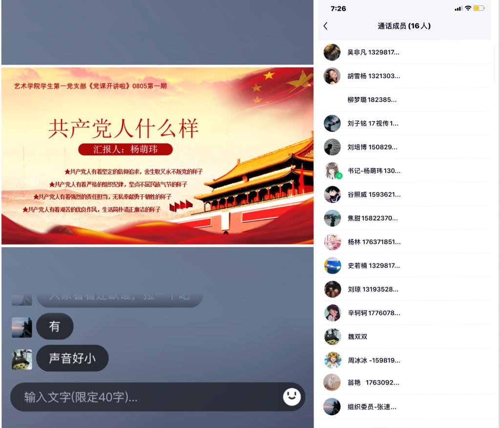 在讲党课的过程中,杨萌玮书记总结了共产党人的四种样子:共产党人有着坚定的信仰追求,舍生取义永不叛党的样子;共产党人有着严格的组织纪律,坚贞不屈民族气节的样子;共产党人有着强烈的责任担当,无私奉献勇于牺牲的样子;共产党人有着艰苦的优良作风,生活简朴清正廉洁的样子。党课结束后,杨萌玮书记还给参会的党员同志讲解了自己做党课的思路和过程,并将党课题材的选取方向给大家做了讲解,希望大家可以选好题材,做出自己的党课。