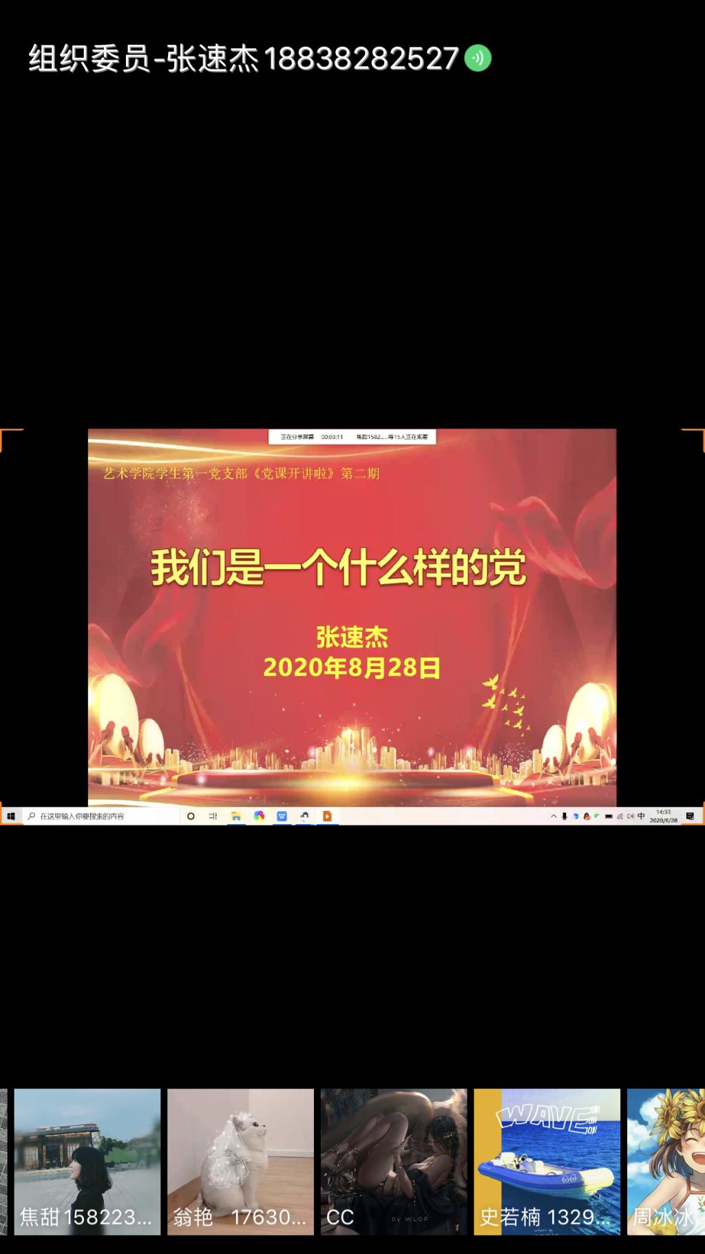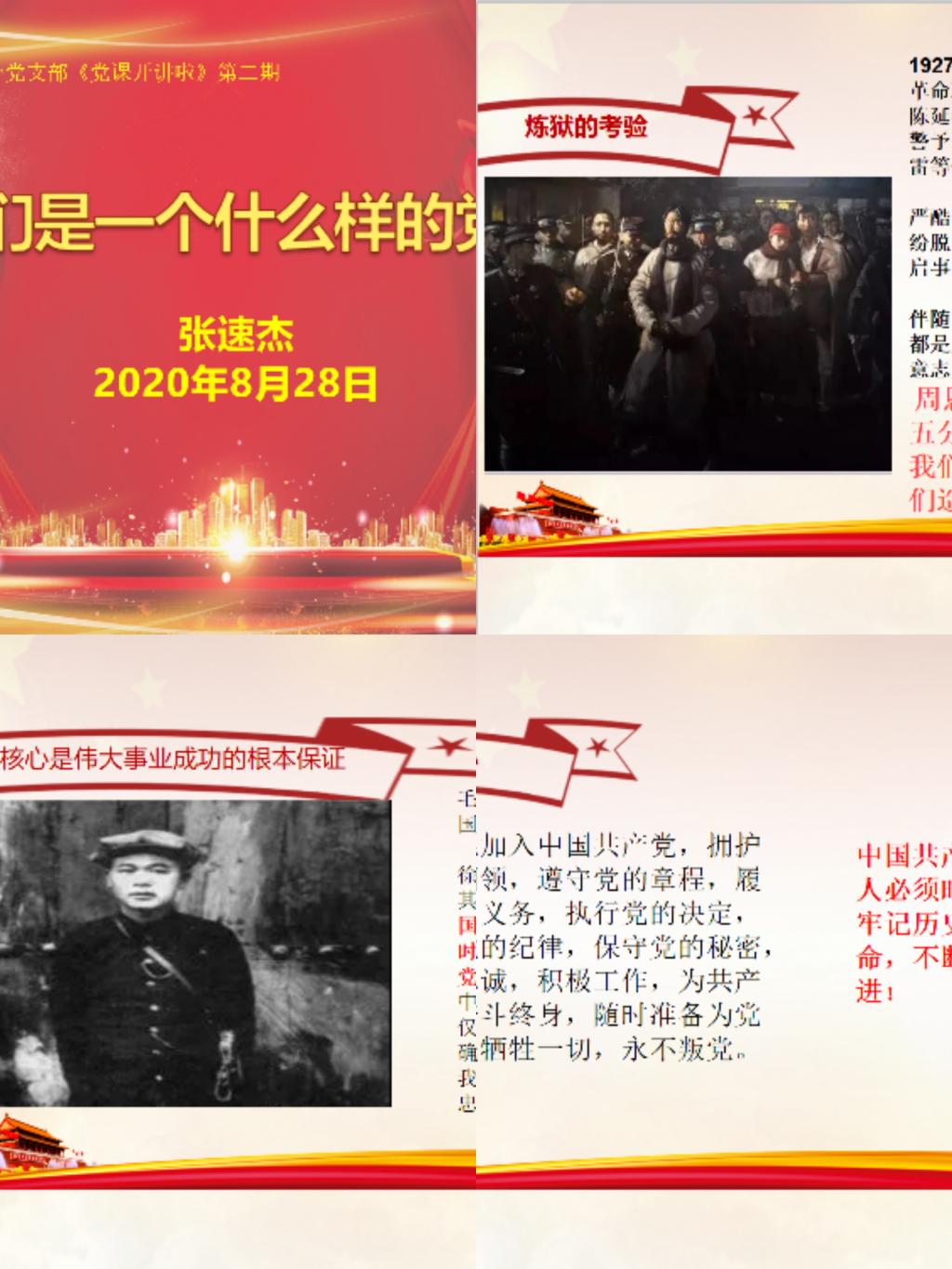 8月28日下午太阳集团tyc员工第一党支部开展第二期《党课开讲啦》系列学习,组织委员张速杰通过qq云平台以“我们是一个什么样的党?”为题,讲述了中国共产党人坚定的理想信念和初心使命。太阳集团tyc员工第一党支部全体成员参会。
