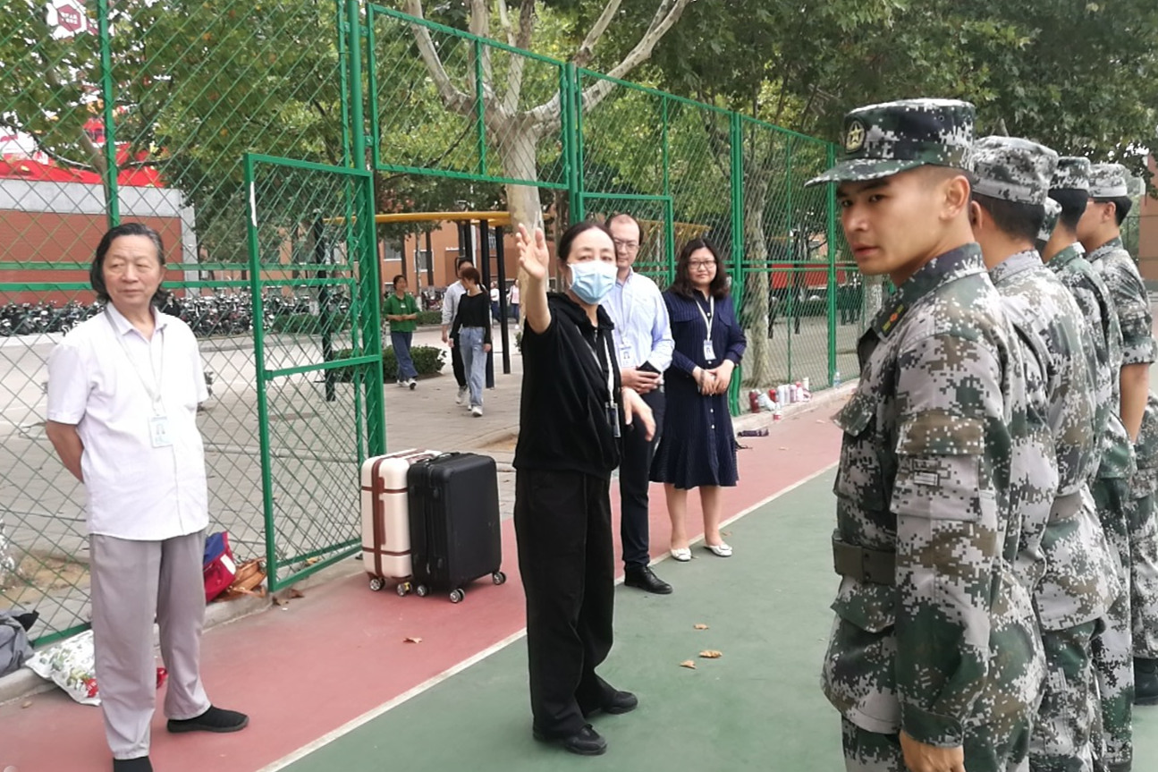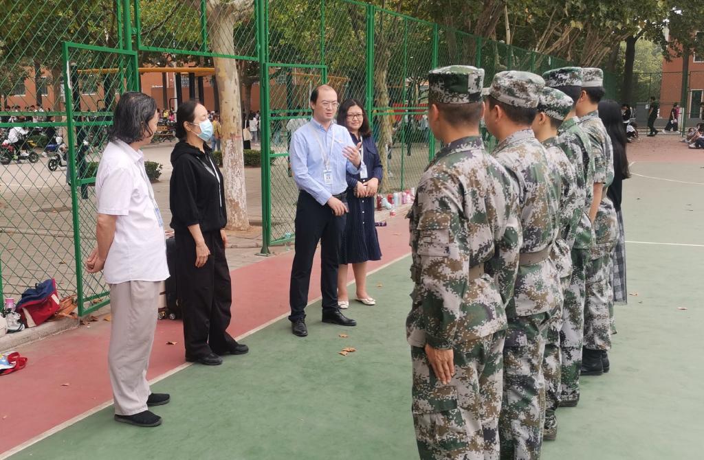 9月25日上午,太阳集团tyc经理李惠莉,党总支书记韦杨建,副经理赵维平及全体新生班辅导员老师来到公司军训现场,亲切看望、慰问正在紧张训练的承训教官、参训新生及工作人员。