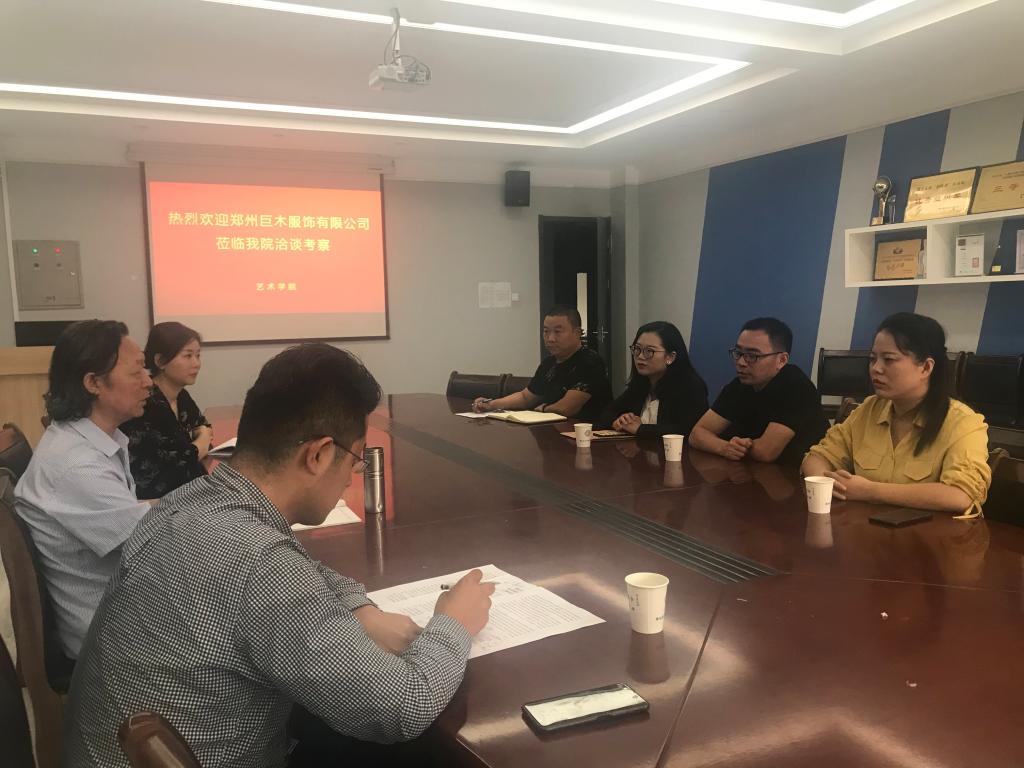 2020年9月29日上午,郑州巨木服饰有限公司徐总监、人力资源部邢总、王总一行三人来公司洽谈合作事宜。太阳集团tyc赵经理,校地合作处项目开发科科长王彦雨,服装教研室主任王蓓,就业专员高晓阳在升达经贸管理学院艺术楼411会议室热情接待了徐总监一行,双方就进一步深入加强校地合作、合作开展创新创业活动进行了友好交流。