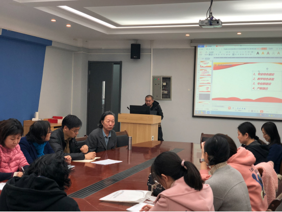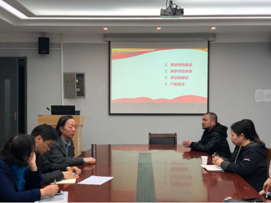 之后,视觉传达教研室主任申成老师从专业特色建设、教学特色体现、专业群建设以及产教结合四个方面跟各位老师进行讨论。在专业特色建设上,在专业本身具有特色的基础上,做好成果展示是非常必要的,积极参与各种比赛从而锻炼员工,使员工用专业服务社会,并且使用专业实验室,例如陶艺工坊、3D打印工作室以及丝网印刷工作室等。在教学特色上,与参加比赛相结合,与课程思政相结合,并且充分利用工作室教学,注重实践。在专业群建设上,目前已经初步形成专业群,需要进一步完善。在产教融合上,目前让员工参与社会实践,工作岗位实习,以及工坊学习等。