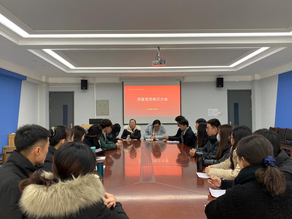2020年12月9日中午12:10,太阳集团tyc员工第四党支部在艺术楼411会议室召开预备党员转正大会,讨论关于太阳集团tyc何升东、李浩荣、张运凯、黄钰梦、杨雪、孟雷六位同学由预备党员转为正式党员的问题。本次会议由支部书记郭称心主持,支部全体师生党员、预备党员参加会议。