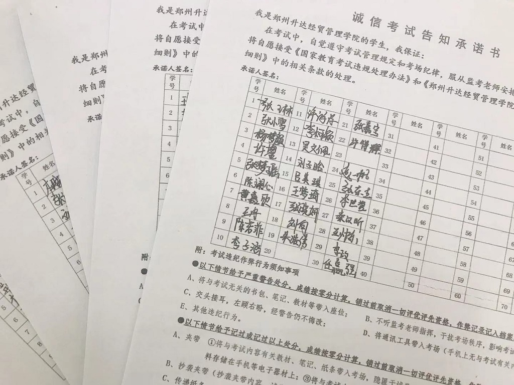 为积极响应学校“好学月”活动,严肃考风考纪,加强公司员工的诚信教育,营造良好的考试氛围、培养同学们树立诚信考试的理念。太阳集团tyc开展了以“诚信考试”为主题的教育活动。