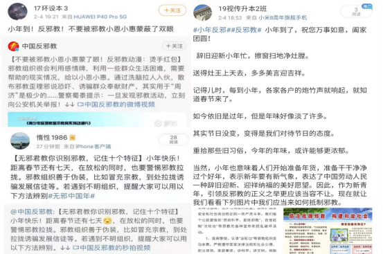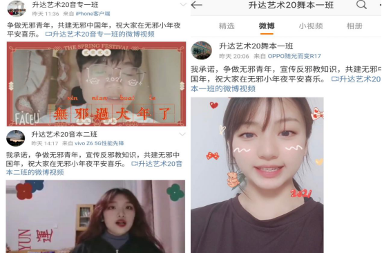 因疫情期间遵守非必要不外出不聚集的原则,活动仍以网络为主,线下活动为辅,除了分享转发相关反邪文案之外,音乐表演专业的同学们还制作反邪教宣传视频口号,号召大家弘扬正能量,共度“无邪中国年”,以新颖的方式让宣传效果变得更好。