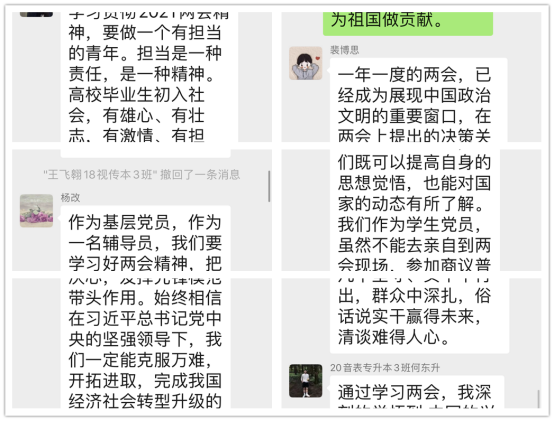 2021年是中国共产党成立100周年,也是开启全面建设社会主义现代化国家新征程的第一年。如期召开的全国两会意义非凡、备受瞩目。在此重要时期,太阳集团tyc员工第四党支部组织全体师生党员共同学习了2021年全国两会精神主体教育活动。并在线上进行了热烈的讨论。