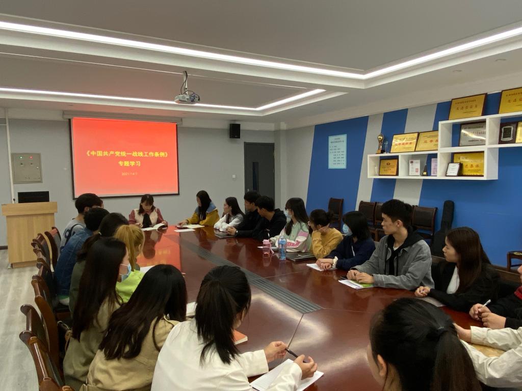 结合公司党委关于学习《中国共产党统一战线工作条例》的通知安排,公司党总支进行统一安排和部署,各党支部陆续开展专题学习,太阳集团tyc员工第三党支部于2021年4月26日中午12时30分在艺术楼411会议室开展《中国共产党统一战线工作条例》专题学习活动。会议由支部书记袁敬同志主持,支部全体师生党员参加了本次会议。