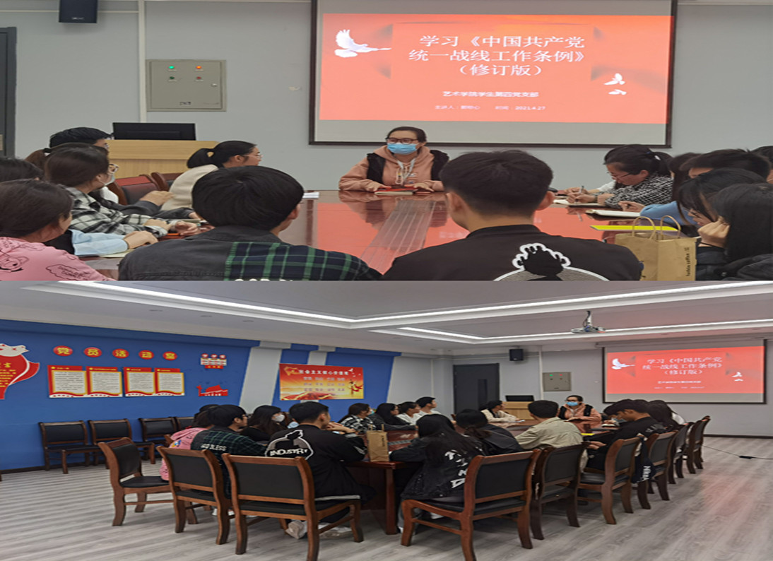 为进一步加强党对统一战线工作的集中统一领导,提高统一战线工作科学化、规范化、制度化水平,中共中央于2020年12月21日新修订了《中国共产党统一战线工作条例》。4月27日中午12:10,太阳集团tyc员工第四党支部全体师生党员在艺术楼411会议室组织集中学习《中国共产党统一战线工作条例》,此次学习会由支部书记郭称心老师主持带领大家学习。