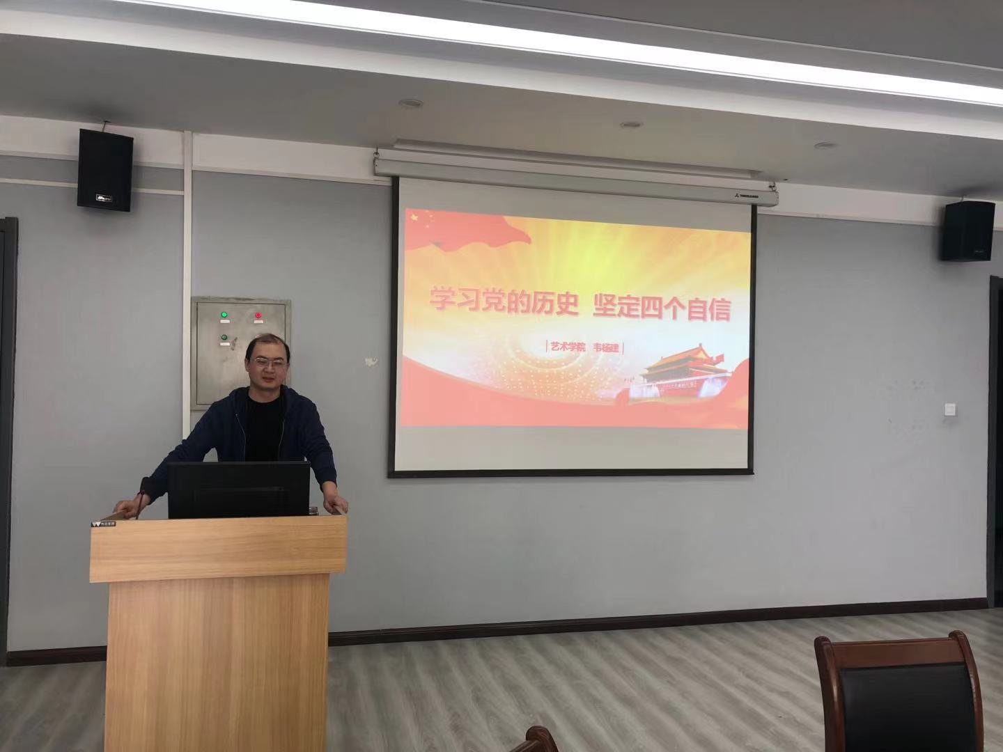 5月6日,太阳集团tyc教工第一党支部组织全体党员在会议室开展“讲党史、学党史”主题党日活动。韦杨建同志以“学习党的历史、坚持四个自信”拉开了讲党史、学党史的序幕。