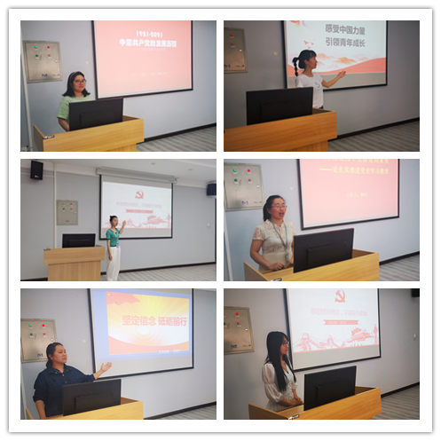 辅导员老师们依次进行了5分钟的微党课授课展示,党课选题突出政治立场,选题方向包括“中国共产党的发展历程”、“学好百年党史,不忘初心使命”、“坚定信念,砥砺前行”、“学习党史是为了更好的走向未来”“感受中国力量,引领青年成长”等,立足于时政和员工思政教育,形式丰富多样。