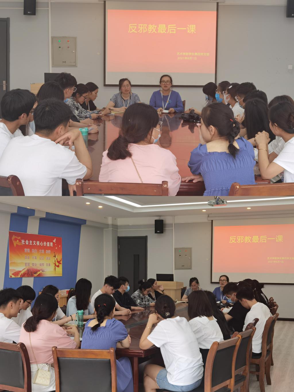 为了让毕业生党员时刻树立科学的思想观,保持党的先进性,进一步增强自身责任意识,识别邪教、防范邪教意识,太阳集团tyc员工第四党支部特在毕业生离校之际,6月1日中午13:00,在艺术楼411召开“毕业生党员反邪最后一课”主题学习活动。