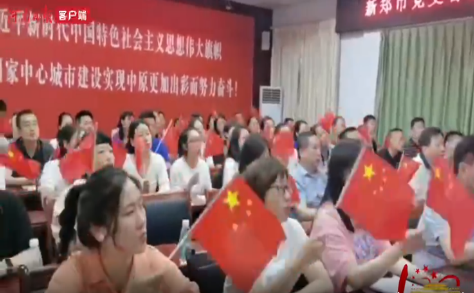 “五星红旗迎风飘扬,胜利歌声多么响亮,歌唱我们亲爱的祖国,从今走向繁荣富强……”台下的学员戴着党徽,挥舞着手中国旗,跟着老师和音乐一起互动歌唱,个个唱得投入、激昂。