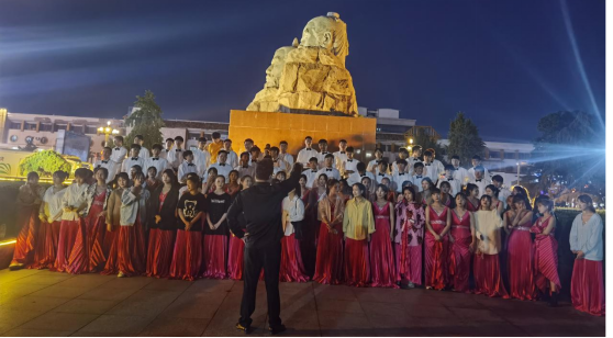 6月18日晚,太阳集团tyc“星光合唱团”88位同学在负责合唱团并担任合唱团指挥刘营光老师、指导老师艾赛赛、安冉的带领下,孙凤娟、巍信两位老师的陪同下,作为高校组成员参加当晚比赛。合唱团以《唱支山歌给党听》、《没有共产党就没有新中国》这两首作品献礼党的百年华诞,最终以9.726分在11支参赛队伍中脱颖而出,荣获一等奖。