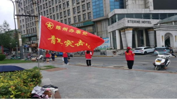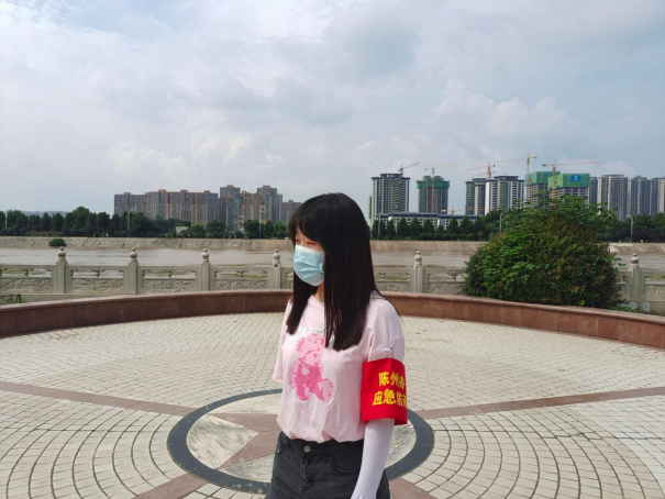 杨玉莹,2020级数媒本1班员工,在河南省周口市川汇区中州大道滨河路大铁牛沙颍河大堤附近,进行应急防汛志愿服务以应对周口泄洪对周口市民造成的不利影响。