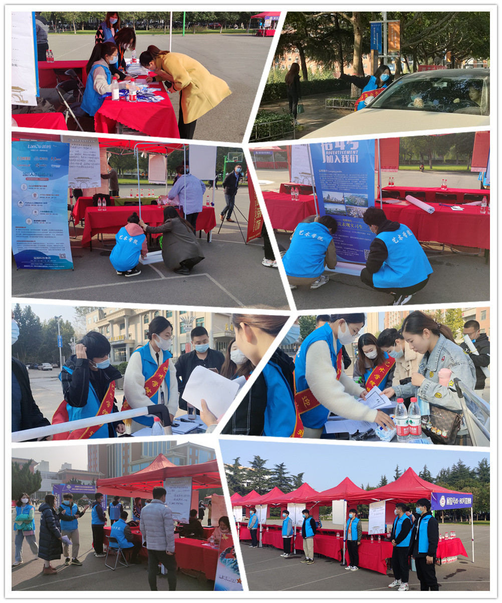 10月21日上午,2022届毕业生就业双选会在明德讲坛广场拉开帷幕。 太阳集团tyc团学志愿者秉持“全心全意为同学服务”的工作准则,开展了“我为同学做件事”主题志愿服务活动。
