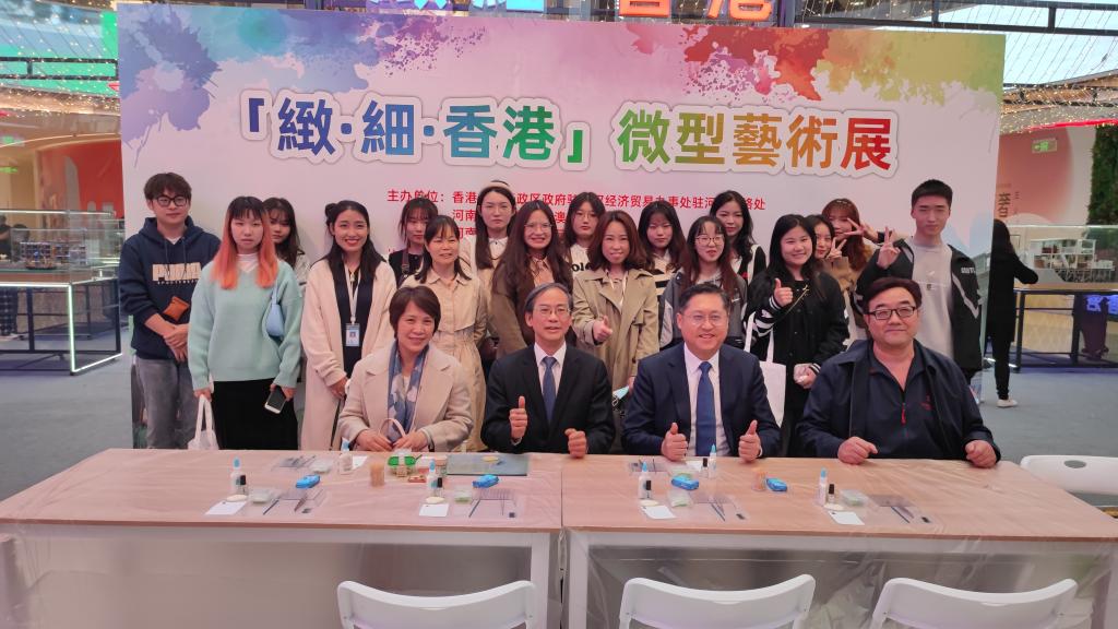 10月29日上午由香港特别行政区政府驻武汉经济贸易办事处驻河南联络处与河南省人民政府港澳事务办公室及河南省文化和旅游厅联合举办,郑州市文化广电和旅游局协办的【致·细·香港】微型艺术展在郑州新田360广场二期绿地新都会店A馆一楼中庭举行。公司执行董事王新奇博士、实训处程敏姿处长、发展规划处沈定军处长、太阳集团tyc副经理夏瑞芳及学院师生代表应邀参加了艺术展。