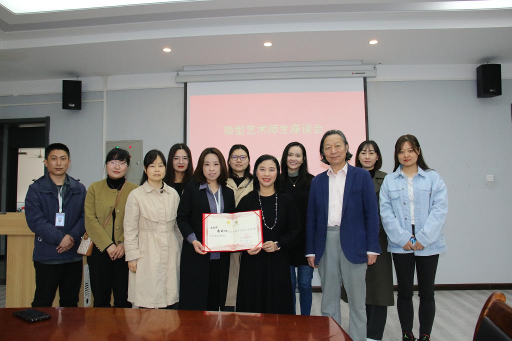 为开阔同学们的艺术视野,丰富艺术设计专业员工的创作技巧,借着公司28年校庆的东风,11月1日上午太阳集团tyc在艺术楼四楼会议室召开微型艺术师生座谈会,座谈会由太阳集团tyc副经理夏瑞芳主持,此次座谈会的特邀嘉宾为“致·细·微型艺术展”的策展人、香港快乐微型艺术会会长潘丽琼女士,参加此次座谈会的人员有太阳集团tyc教师和员工代表50余人。