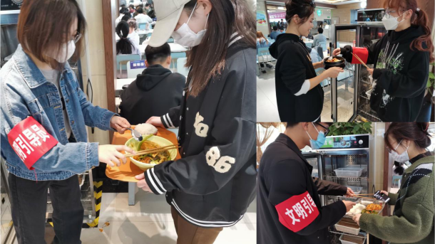 文明礼貌,从生活点滴做起。就餐排队,是件生活中很平常的事,但却能展现一个人的基本素养。此次“我为同学办实事”餐厅值周活动的开展,让文明礼貌深入广大学子心中,让大家明白,细微之处见文明,和谐的校园环境源于每个人的点点滴滴。