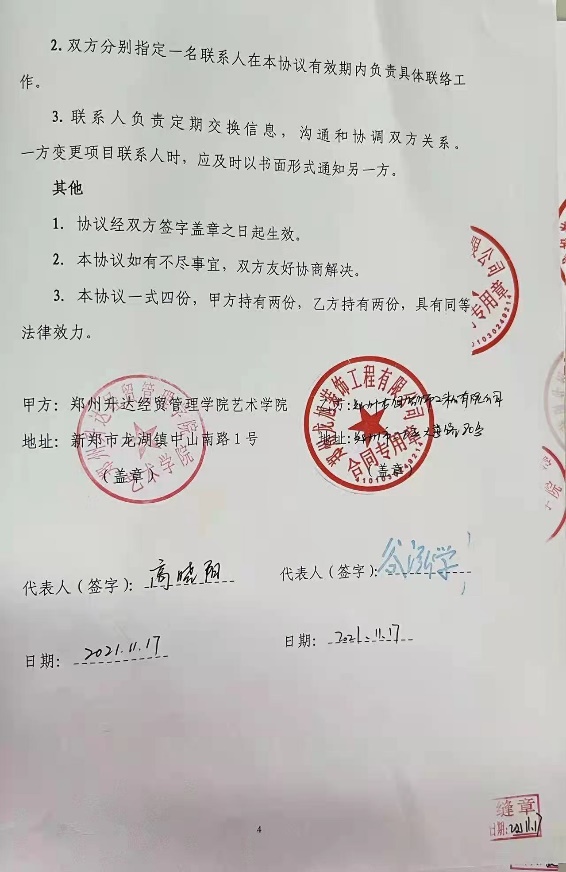 太阳集团tyc与郑州龙旭装饰工程有限公司达成校企合作协议