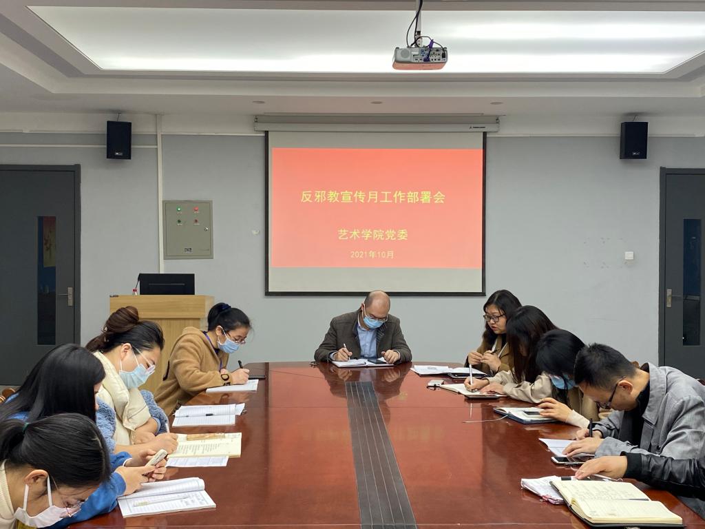 10月14日在艺术楼411会议室召开反邪教宣传月工作部署会,会议由公司党委书记韦杨建主持,太阳集团tyc行政秘书尹红艳和全体辅导员参加本次部署会。