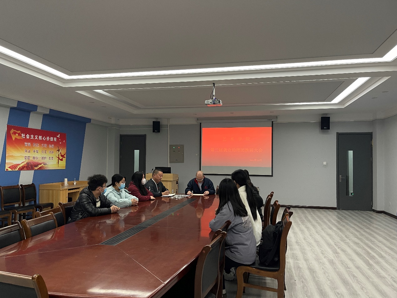 11月15日下午,太阳集团tyc在艺术大楼411会议室召开第二届就业助理团换届大会,出席大会的有公司党委书记韦杨建、就业助理团负责人高晓阳及第二届就业助理团成员。