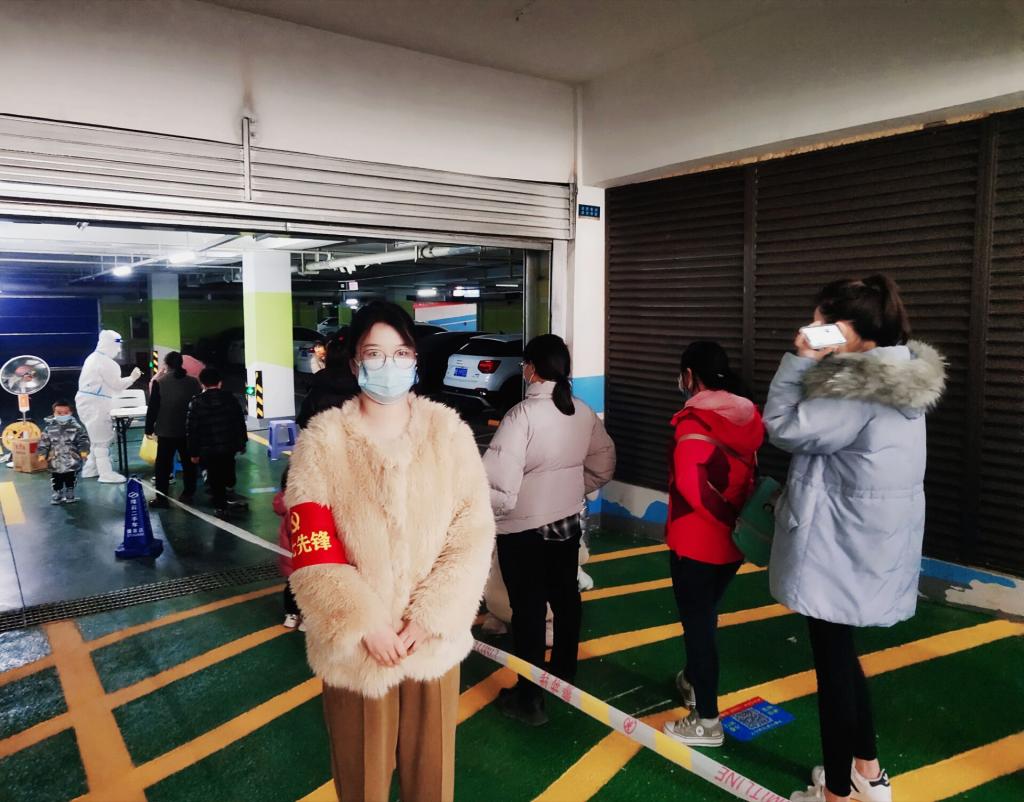 武心如同学积极发挥奉献、友爱、互助、进步的志愿者精神,与社区志愿服务工作者对接后在本小区主要负责核酸检测测温任务及秩序维护任务,在做好自我保护的前提下配合物业和社区完成全民核酸检测任务。