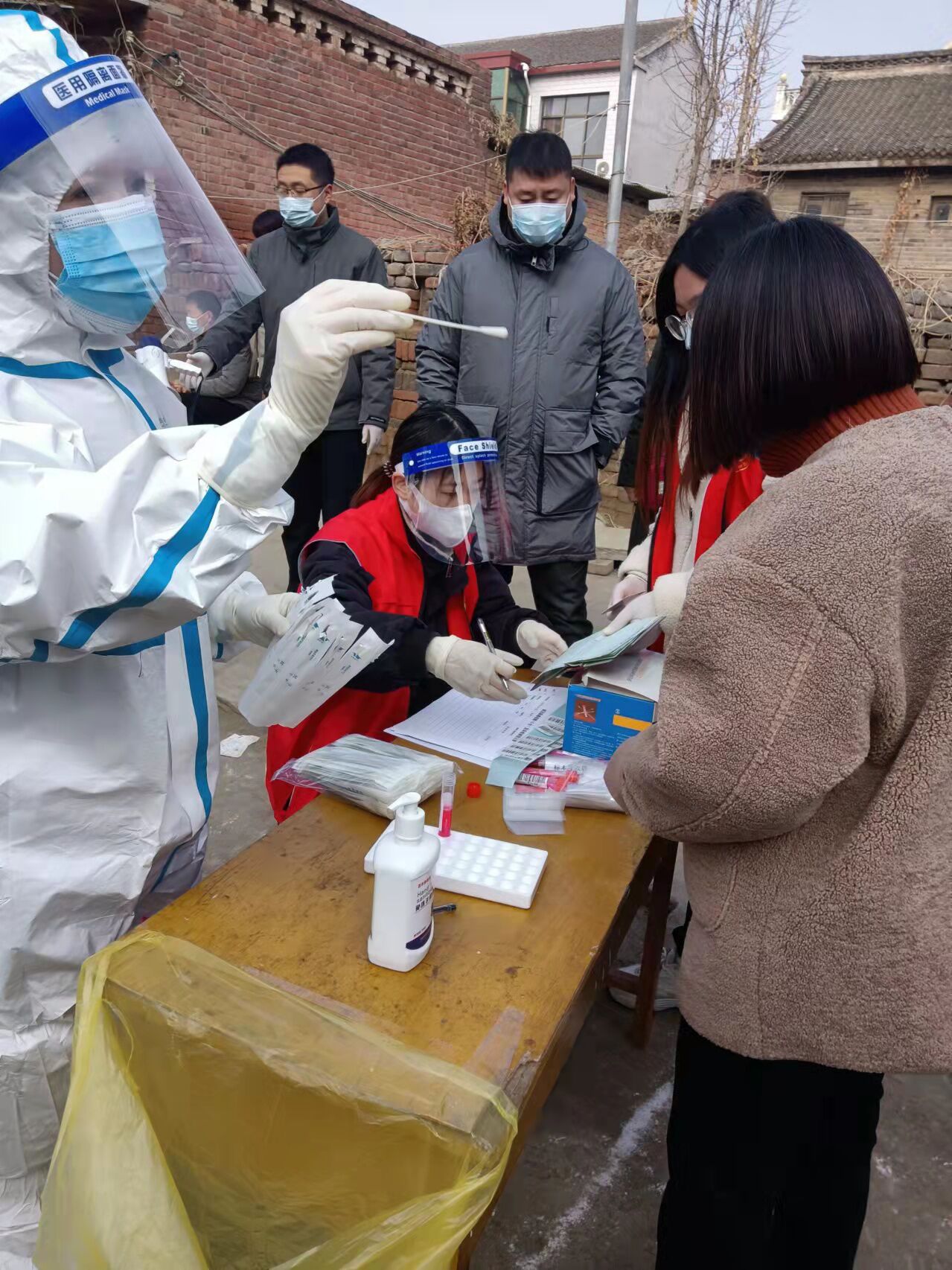 该生的家乡位于河南浚县,从学校回到家不久,安阳滑县就出现一例无症状确诊病例,流调爆出后,浚县立马进入紧急状态,该生认为身为一名积极向上的老员工就应该去为自己的家乡尽一份力量,当该生居家隔离14天期满后,他立马投身于浚县的疫情防控工作中,并担任了淇河路返浚排查工作中,挨家挨户的进行返乡以及核酸检测结果的登记工作。